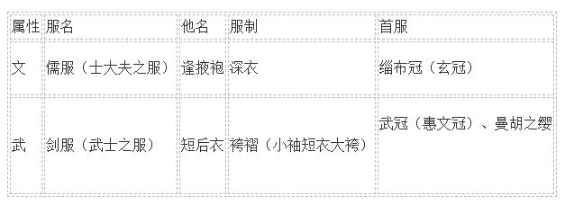 孔子在姬姓鲁国衣逢掖之衣,来自周公的燕居之服,长居宋国则冠章甫之冠。“章甫之冠”指的是一种殷冠,周朝叫委貌冠或缁布冠,治理朝政所冠。庄子则提到了儒服以及武士之服剑服。因此儒服又成为后世的道袍。因此儒服和剑服成为华夏王朝文武百官的法服,也是士大夫和武士的汉服基本服制。