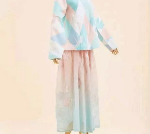 汉族服饰几千年来的总体风格是以清淡平易为主,讲究天人合一。汉族古代的袍服最能体现这一风格,这种袍服的主要特点是宽袍。大袖,褒衣博带。从汉代的帛画和魏晋隋唐遗留下的一些人物画中窥其神貌之一二——形制简单的汉装大衣附着在不同体态的人物身上顿时具有了一种鲜活的生命力,线条柔美流畅。袍服充分体现了汉民族柔静安逸和娴雅超脱、泰然自若的民族性格,以及平淡自然、含蓄委婉、典雅清新的审美情趣。