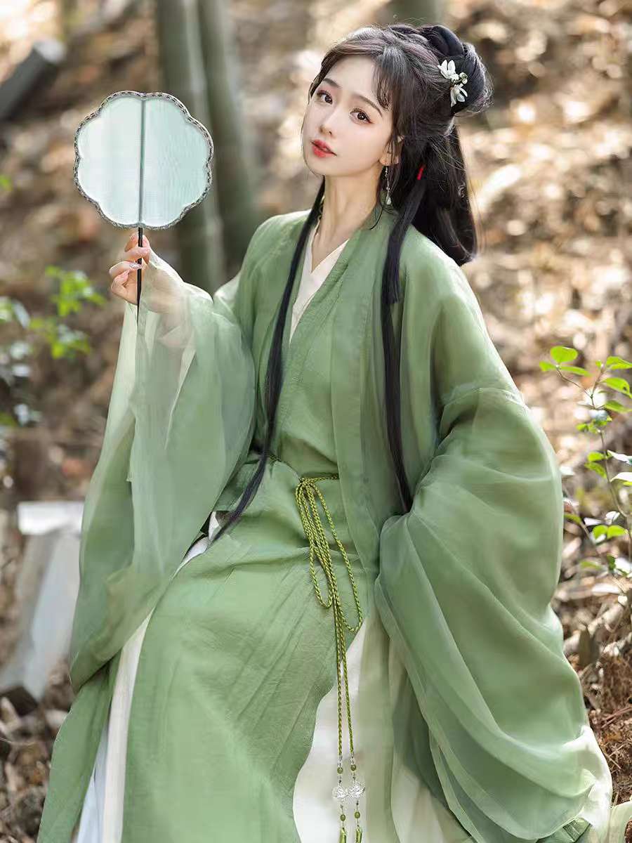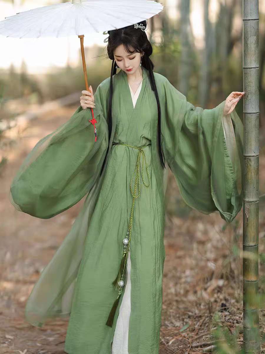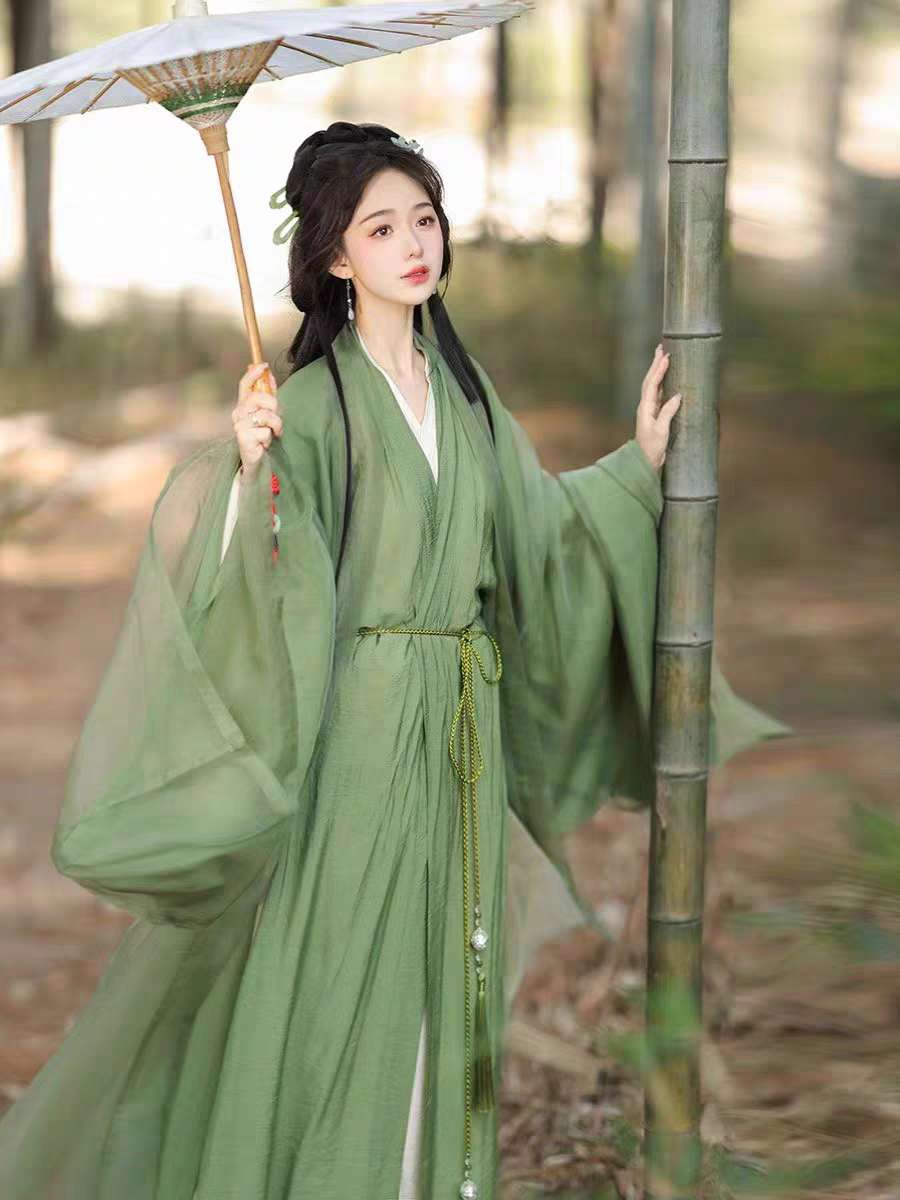 出租汉服原创汉服女【文竹青衣】魏晋风交领长衫清冷风仙气日常款