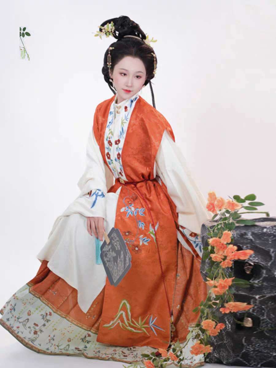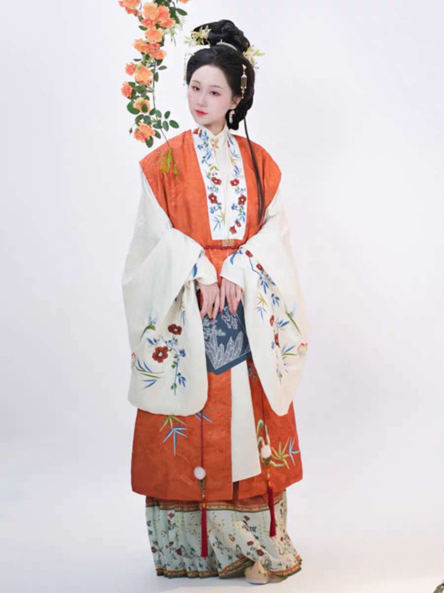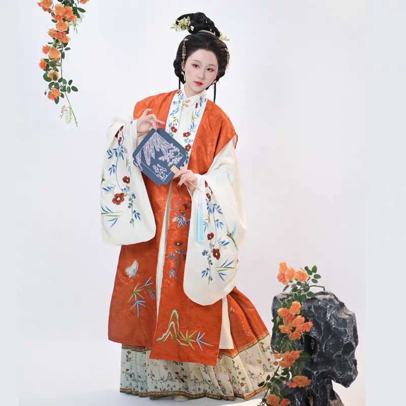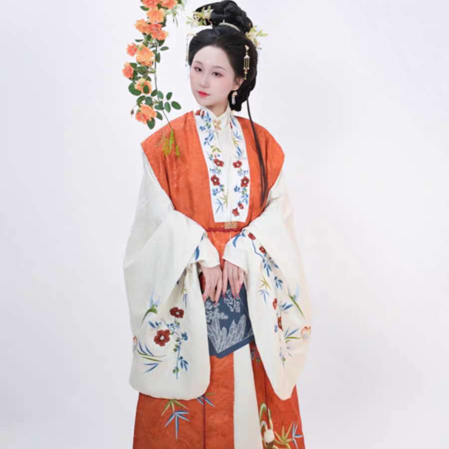 出租汉服【晚来秋】明制汉服女立领长衫刺绣包肩比甲秋冬日常款