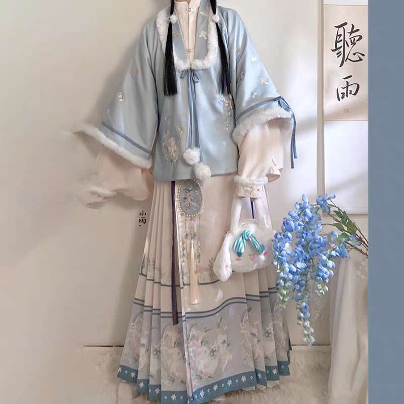 出租汉服原创汉服【蘑菇兔】明制比甲马面裙立领琵琶袖刺绣日常秋冬