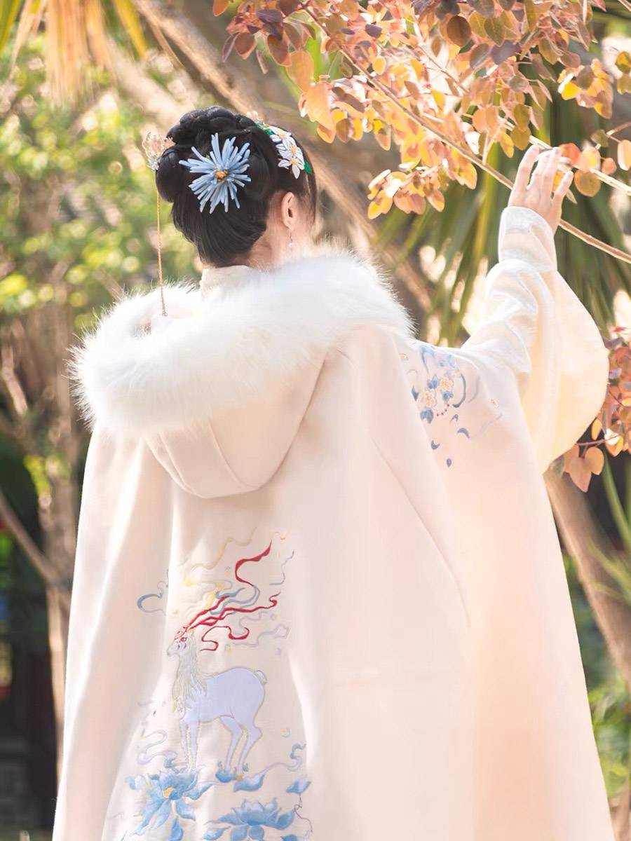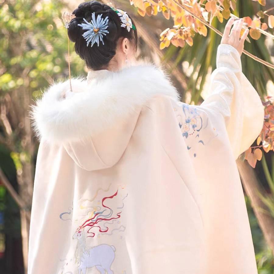 汉服出租白色款海棠落原创 鹿莲歌 秋冬款加厚加绒斗篷披风 古风